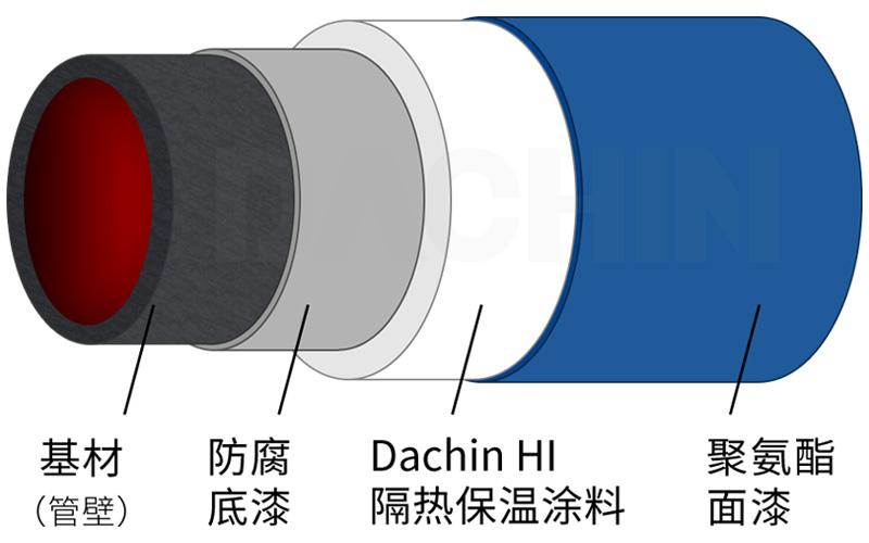 Dachin HI 150 水性纳米隔热保温涂料可长期耐受-30℃~150℃,Dachin HI 300 水性纳米隔热保温涂料适配150℃~300℃高温蒸汽管道,兼顾保温与保冷,满足不同压力、温度蒸汽管网的使用需求。